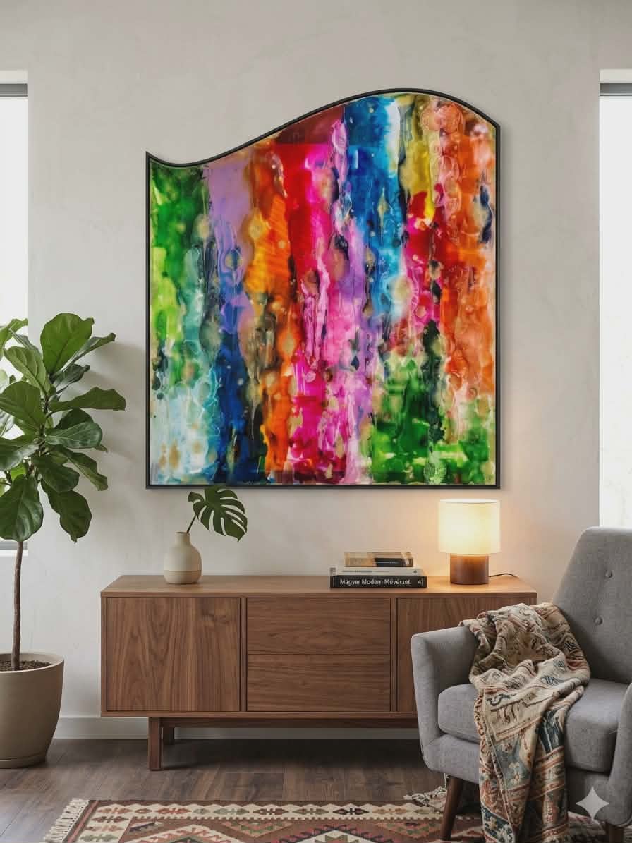 A PULZUS nem csupán egy festmény – egy vizuális fókuszpont, amely mozgást és energiát visz a letisztult enteriőrökbe. A színek áramlása folyamatos változást idéz, így a kép minden napszakban más arcát mutatja.