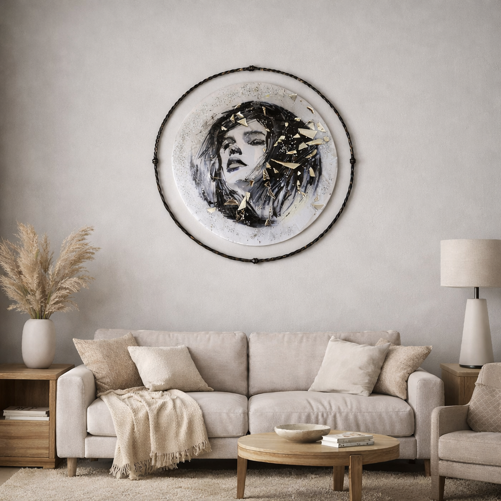 Felülete fényes, csillogó, a fény megcsillanása a felületen minden pillanatban más ragyogást ad a képnek.